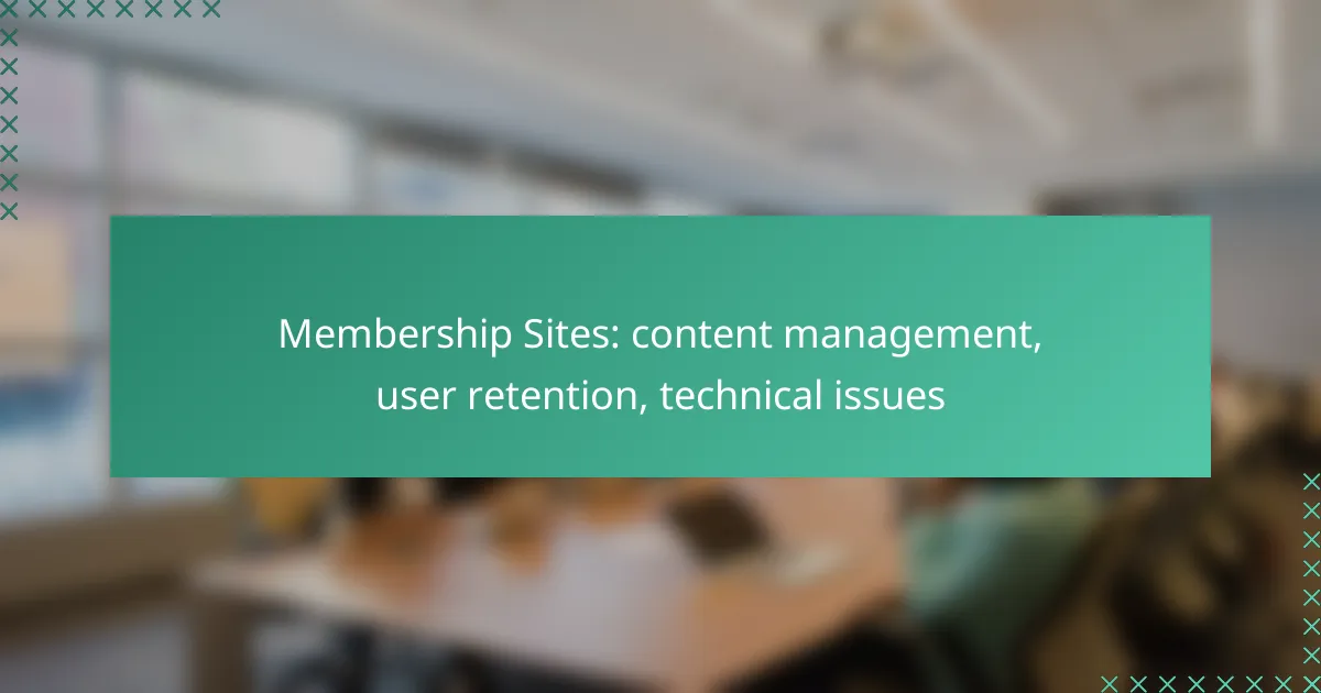 Membership sites require effective content management to enhance user engagement and streamline content delivery. By focusing on user retention through valuable content and community interactions, site owners can foster long-term commitment. Additionally, addressing common technical issues such as payment processing errors and site performance is essential for maintaining user satisfaction.