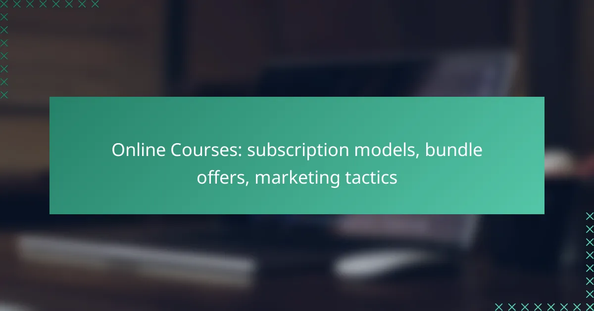 Online courses have become increasingly popular, with various subscription models catering to different user needs and business objectives. By leveraging bundle offers, providers can enhance perceived value and encourage learners to explore multiple courses. Additionally, employing effective marketing tactics such as targeted email campaigns and social media advertising can significantly boost enrollment and engagement.